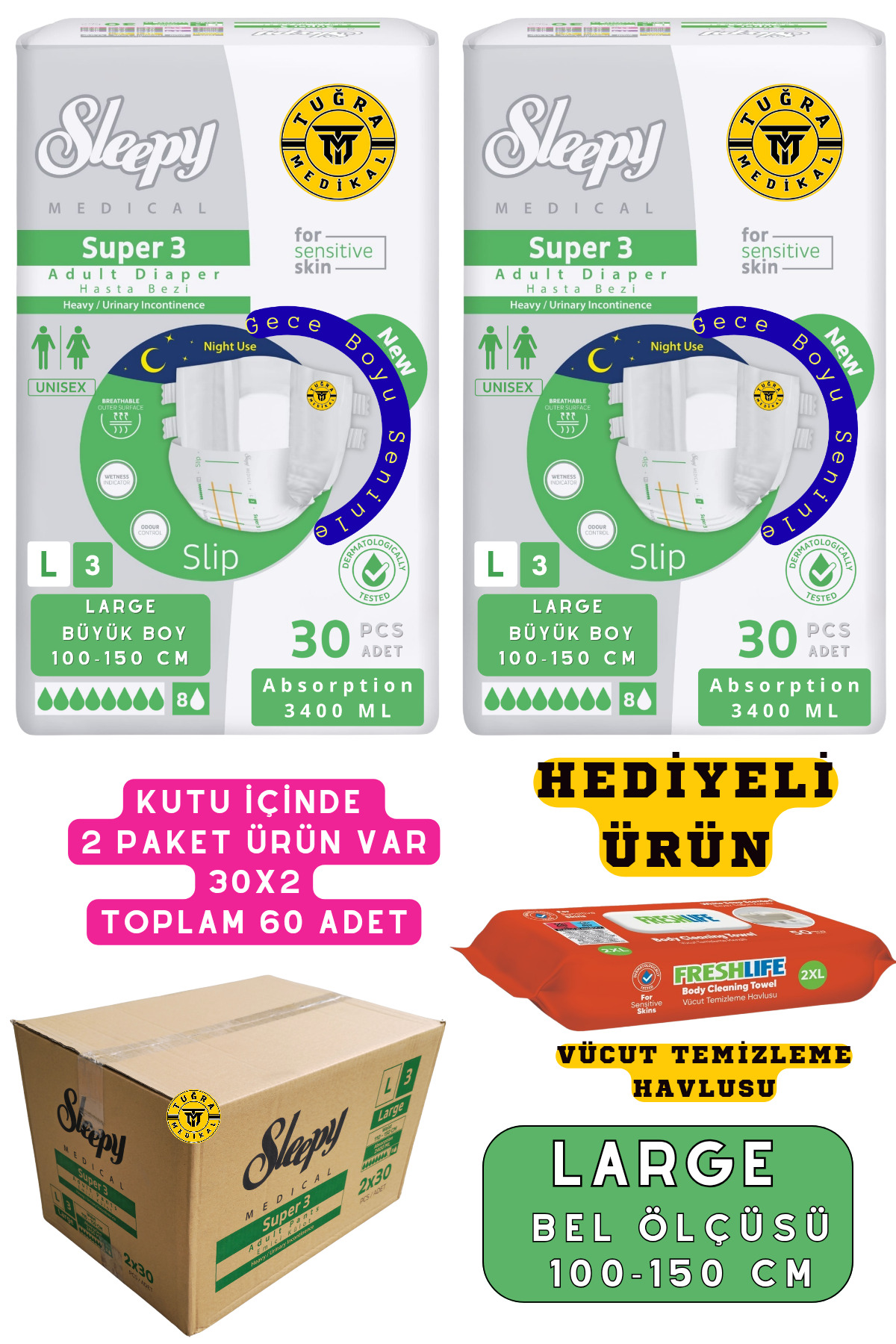 Özel Hediye: Her kutu alımında, hasta bakımını kolaylaştıran Vücut Temizleme Havlusu paketle birlikte gönderilir.
