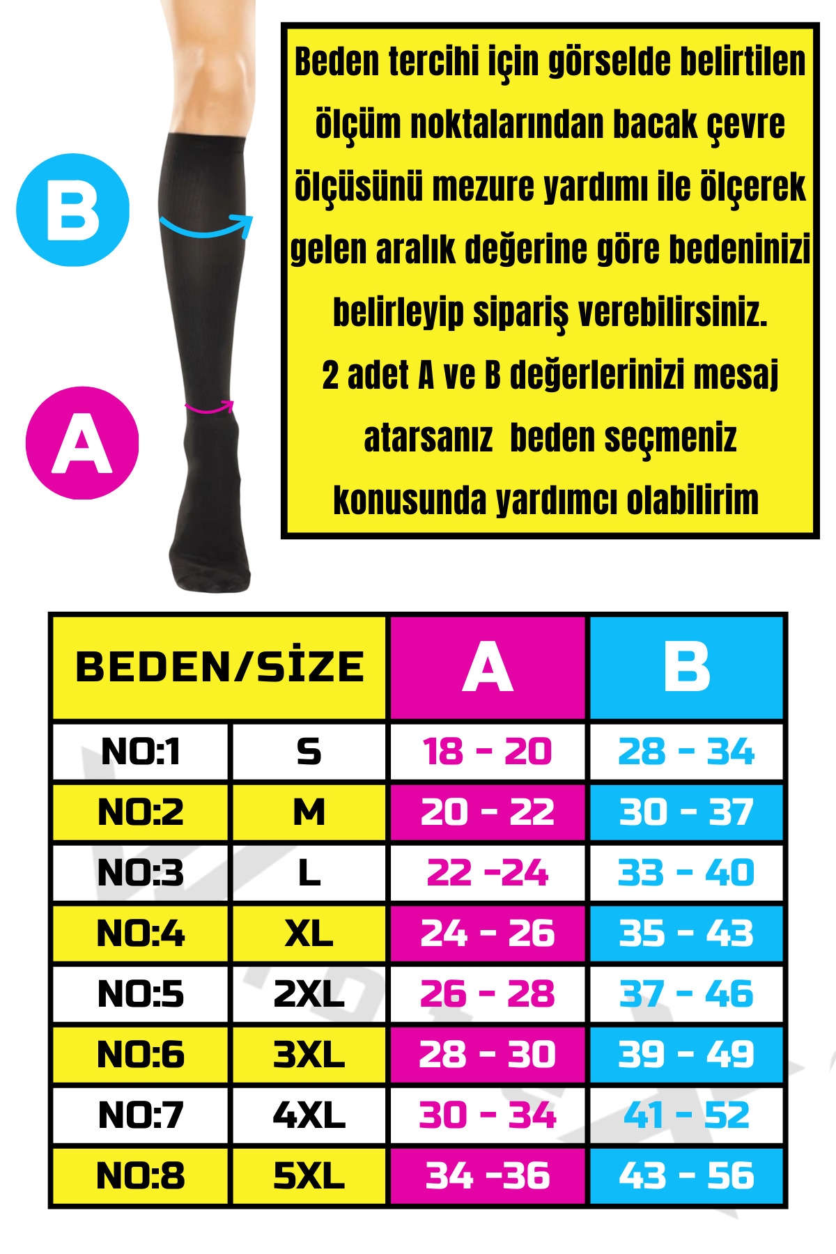 VARİS ÇORAPLARI ERKEK VE BAYANLAR İÇİN ORTAKLAŞA TASARLANMIŞTIR; Tedavinin etkisi ve devamlılığı için doğru ölçüdeki VARİS çorabını kullanmanız gerekmektedir; İleri derece varislerde ilerlemeyi önler ve tedaviye yardımcı olur; Uyguladığı dereceli basınç sayesinde kanın tek bir noktada birikmesini engelleyerek kan dolaşımının hızlanmasına yardımcı olur; Bacaklardaki yorgunluk hissini azaltır; Uzun yolculuklarda kullanıldığında ödemi engelleyen, rahatlatıcı çoraptır; Gün içinde ayakta kaldığınız sürece VARİS çorabı ile dolaşılır; VARİS ÇORABI BEDEN SEÇİMİNİZİ YAPMADAN ÖNCE GEREKLİ BİLGİLER Ürün görselinde olan beden tablosundaki belirtilen bölgelerden ölçüm yapınız; Her iki bacaktan da ölçü alınmalı, not edilerek ürün görselinde bulunan beden tablosundan en uygun aralık seçilmelidir; (Sabah uyanınca alınan ölçü en doğru beden seçimini sağlar) VARİS ÇORAPLARINDA BEDEN NASIL BELİRLENİR 1; Ayak bileğinin en ince yerinden çevre ölçüsünü alın, ölçüm tablosunda A olarak gösterilir; 2; Alt baldırın en kalın yerinden çevre ölçüsünü alın, ölçüm tablosunda B olarak gösterilir; VARİS ÇORABI KULLANIRKEN DİKKAT ETMENİZ GEREKENLER; Sabah uyandığınızda çorabınızı giymeden önce sırt üstü uzanıp ayaklarınızı yukarı 2 dakika kaldırın ve sonra giyin; Kirlenen çoraplarınızı asla çamaşır makinasına atmayın; Yıkamayı sadece elde çitilemeden ılık sabunlu su ve ile yapınız; Kurutma işlemini petek, sandalye çamaşır ipi gibi yerlere asmayınız; Düz bir zemine, havlu serip, havlu arasında oda ısısında kurutunuz;