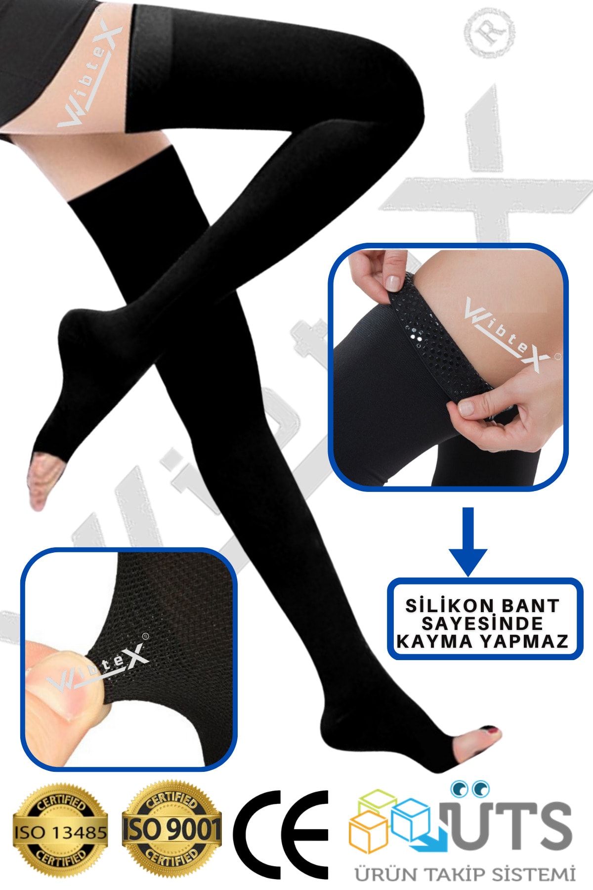 Diz Üstü Çorabı Burnu Açık (siyah Renk) Orta Basınç Ccl2(çift Bacak)