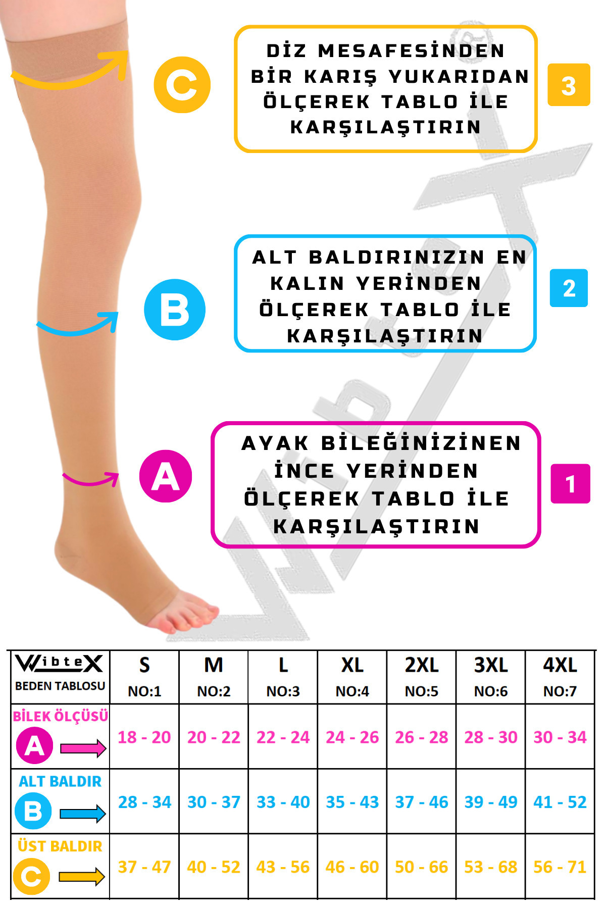 Varis çorapları erkek ve bayanlar için ortaklaşa olarak tasarlanmıştır; Tedavinin etkisi ve devamlılığı için doğru ölçüdeki çorabını kullanmanız gerekmektedir; İleri derece varislerde ilerlemeyi önler ve tedaviye yardımcı olur; Uyguladığı dereceli basınç sayesinde kanın tek bir noktada birikmesini engelleyerek kan dolaşımının hızlanmasına yardımcı olur; Bacaklardaki yorgunluk hissini azaltır; Uzun yolculuklarda kullanıldığında ödemi engelleyen,unisex rahatlatıcı çoraptır; Gün içinde ayakta kaldığınız sürece çorabı ile dolaşılır; VARİS ÇORABI BEDEN SEÇİMİNİZİ YAPMADAN ÖNCE GEREKLİ BİLGİLER Ürün görselinde olan beden tablosundaki belirtilen bölgelerden ölçüm yapınız; Her iki bacaktan da ölçü alınmalı, not edilerek ürün görselinde bulunan beden tablosundan en uygun aralık seçilmelidir; (Sabah uyanınca alınan ölçü en doğru beden seçimini sağlar) VARİS ÇORAPLARINDA BEDEN NASIL BELİRLENİR 1; Ayak bileğinin en ince yerinden çevre ölçüsünü alın,ölçüm tablosunda A olarak gösterilir; (oturur vaziyette iken) 2; Alt baldırın en kalın yerinden çevre ölçüsünü alın,ölçüm tablosunda B olarak gösterilir; (oturur vaziyette iken) 3; Üst baldırın en kalın yerinden çevre ölçüsünü alın,ölçüm tablosunda c olarak gösterilir; (oturur vaziyette iken) VARİS ÇORABI KULLANIRKEN DİKKAT ETMENİZ GEREKENLER *Sabah uyandığınızda çorabınızı giymeden önce sırt üstü uzanıp ayaklarınızı yukarı 5 dakika kaldırın ve sonra giyin; *Kirlenen çoraplarınızı asla çamaşır makinasına atmayın; *Yıkamayı sadece elde çitilemeden ılık sabunlu su ve ile yapınız; *Kurutma işlemini petek, sandalye çamaşır ipi gibi yerlere asmayınız; Düz bir zemine, havlu serip, havlu arasında oda ısısında kurutunuz; ; ;;