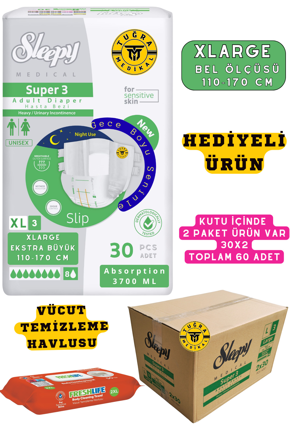 Freshlife Hasta Bezi Belbantlı 60 Adet XLarge Beden